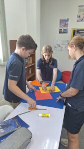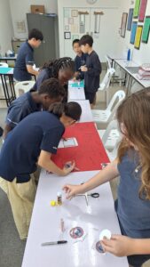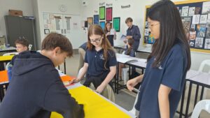 Advisory students working on posters to cheer on other schools coming to play at our school.