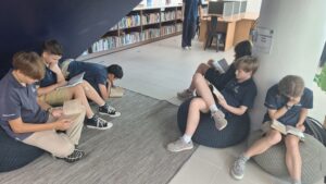 Seventh graders reading the books they chose for Book Share.