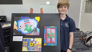 Reese presenting her favorite pieces of art.