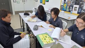 Students analyzing A Christmas Carol together.