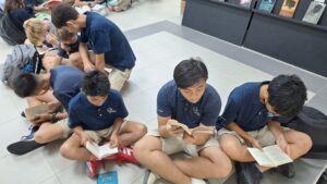 One of my classes choosing to sit and read their new books they just checked out of the library.